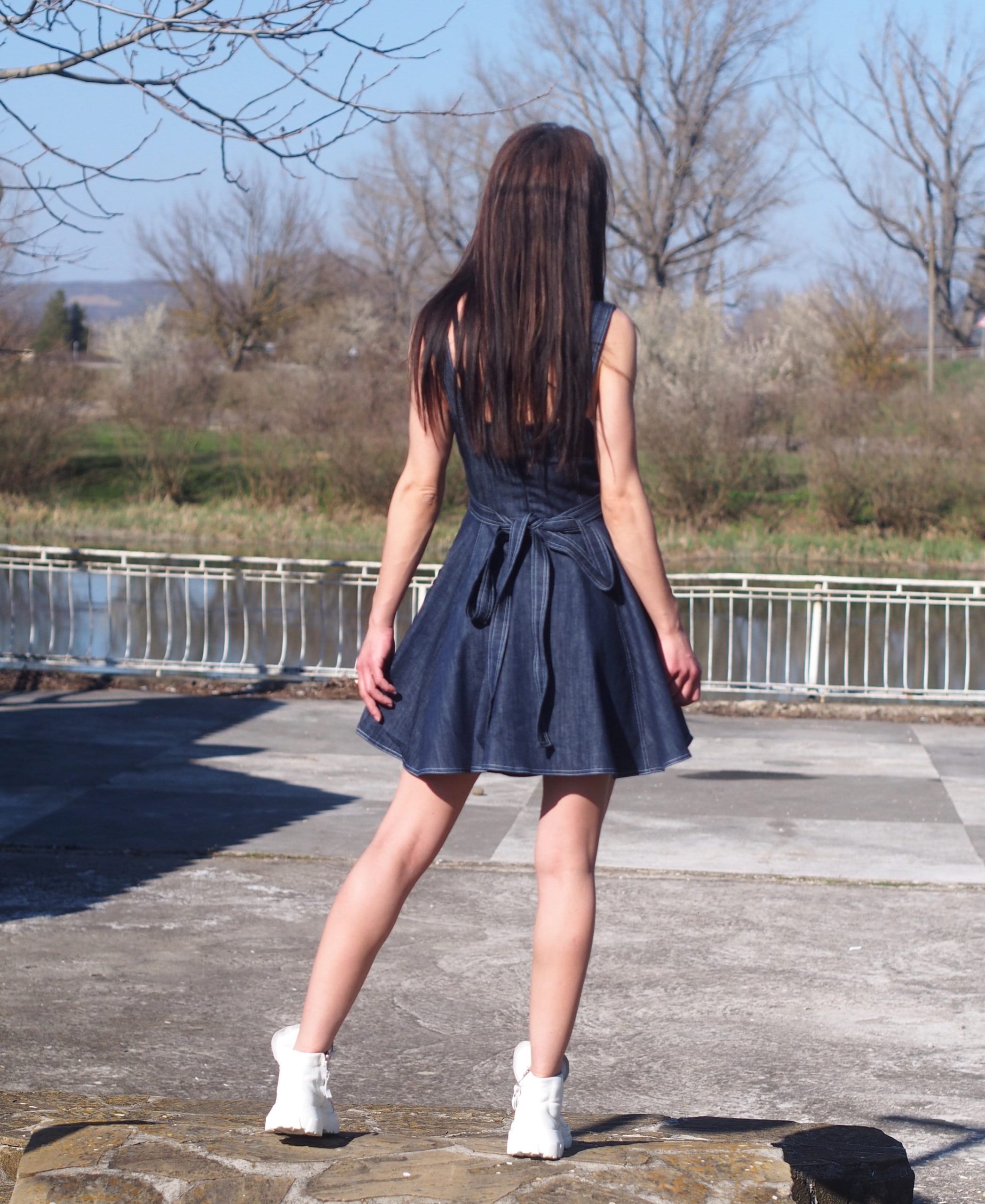 Step into effortless style with this sleeveless denim mini dress, designed to flatter with a fit-and-flare silhouette and a detachable belt that accentuates the waist. Crafted from soft, durable denim fabric, this A-line dress brings vintage charm with a modern twist. Perfect for summer days, festivals, or casual outings, it s versatile enough to dress up with heels or go relaxed with sneakers or boots. The tailored top and flared skirt give it a playful yet feminine look, making it a must-have addition to your wardrobe.